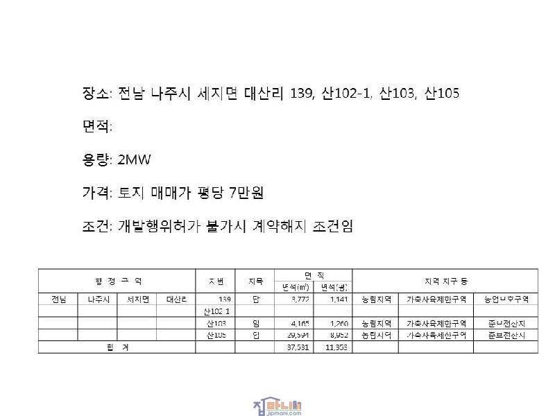 | Àü³² ³ªÁֽà ¼¼Áö¸é ž籤 2MW ¹ßÀü¼Ò ÅäÁö ¸Å¸Å | ||||||