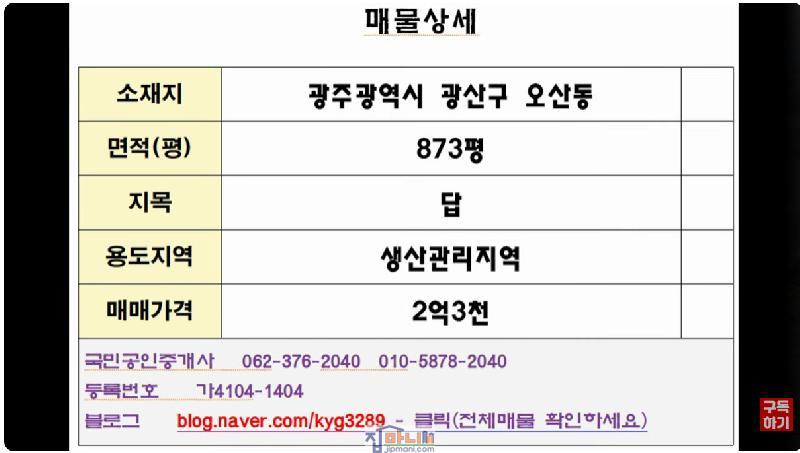 ±¤ÁÖ±¤¿ª½Ã ±¤»ê±¸ ¿À»êµ¿ »ý»ê°ü¸®Áö¿ª ´ä873Æò ¸Å2¾ï3õ